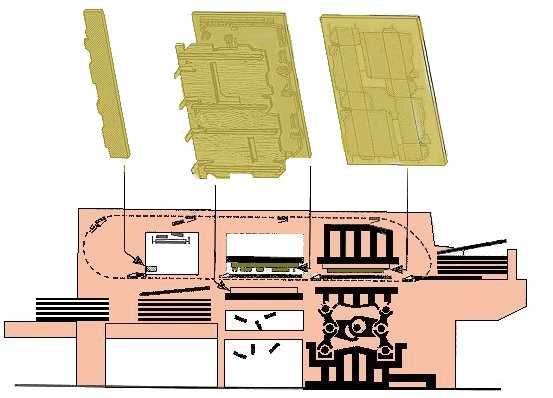 flatbed die-cutter is the popular Bobst SPO1600 machine, illustrated below.