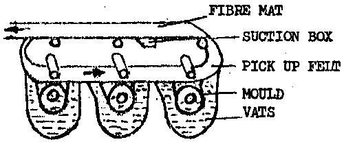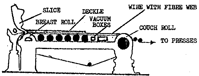 is removed by a rotary vacuum box and the bottom wire then carries the